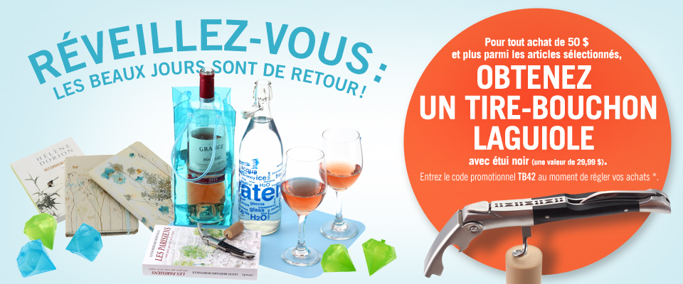 En achetant pour 50$ ou plus chez Renaud Bray, vous aurez un tire-bouchon Laguiole gratuitement! Vous devez utiliser le code promo TB42 pour profiter de cette offre. Merci encore une fois à Julie Roy pour cette belle trouvaille!